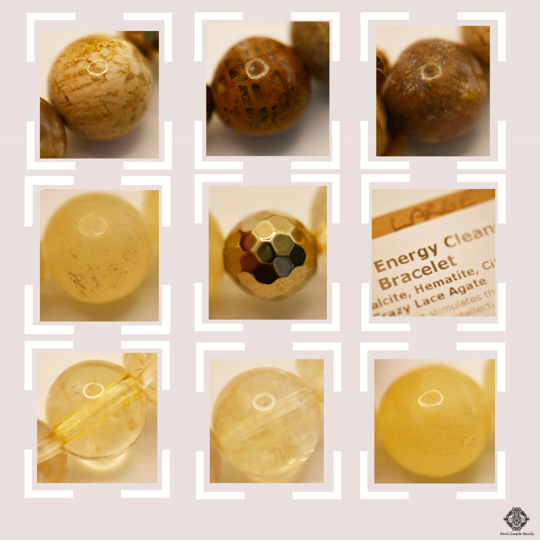Combining Yellow Calcite, Hematite, Citrine, and Crazy Lace Agate in a bracelet creates a harmonious blend of energies that promote joy, grounding, clarity, and emotional balance.