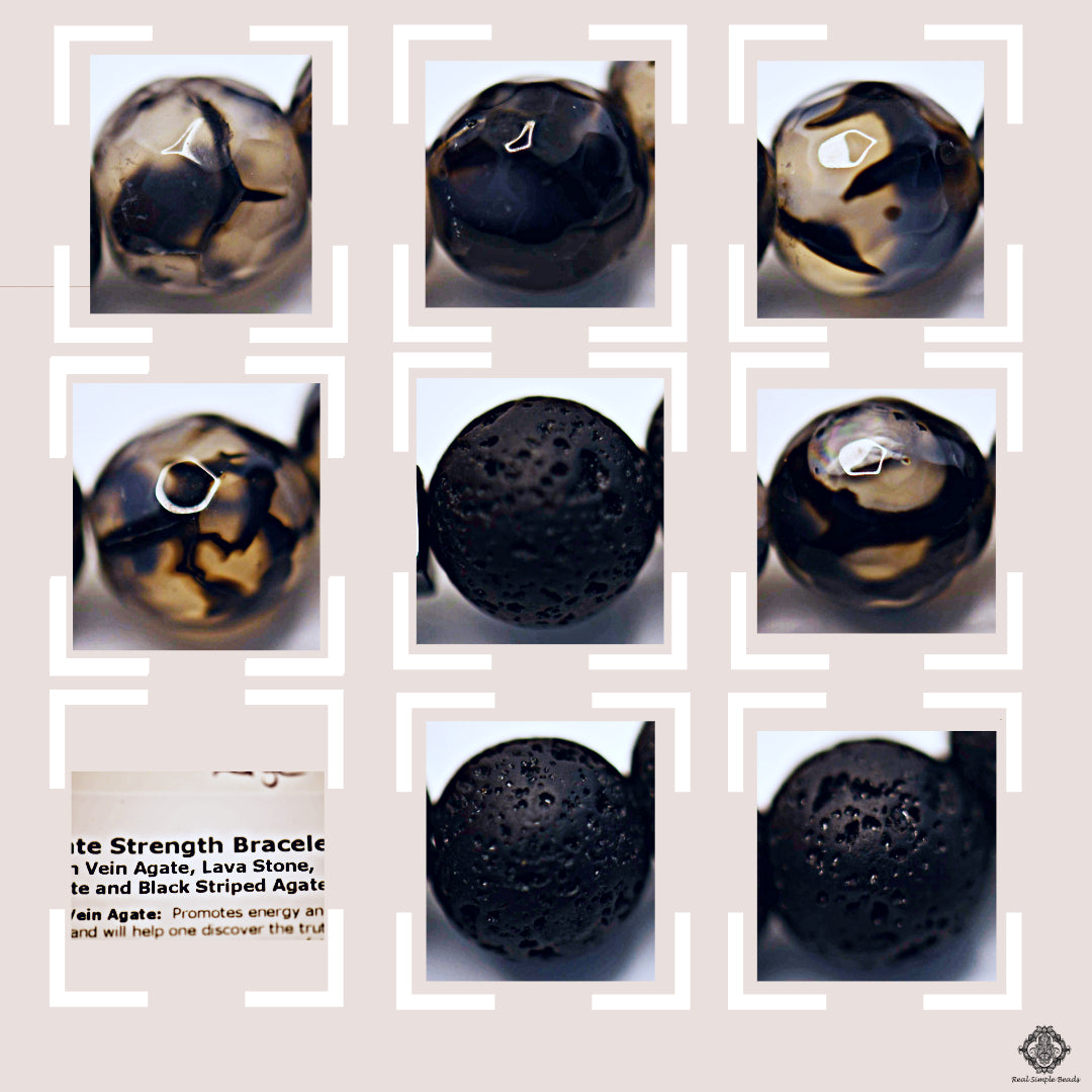Combining Dragon Vein Agate, Lava Stone, Hematite, and Black Striped Agate in a bracelet creates a powerful synergy of grounding, protection, and energy amplification.