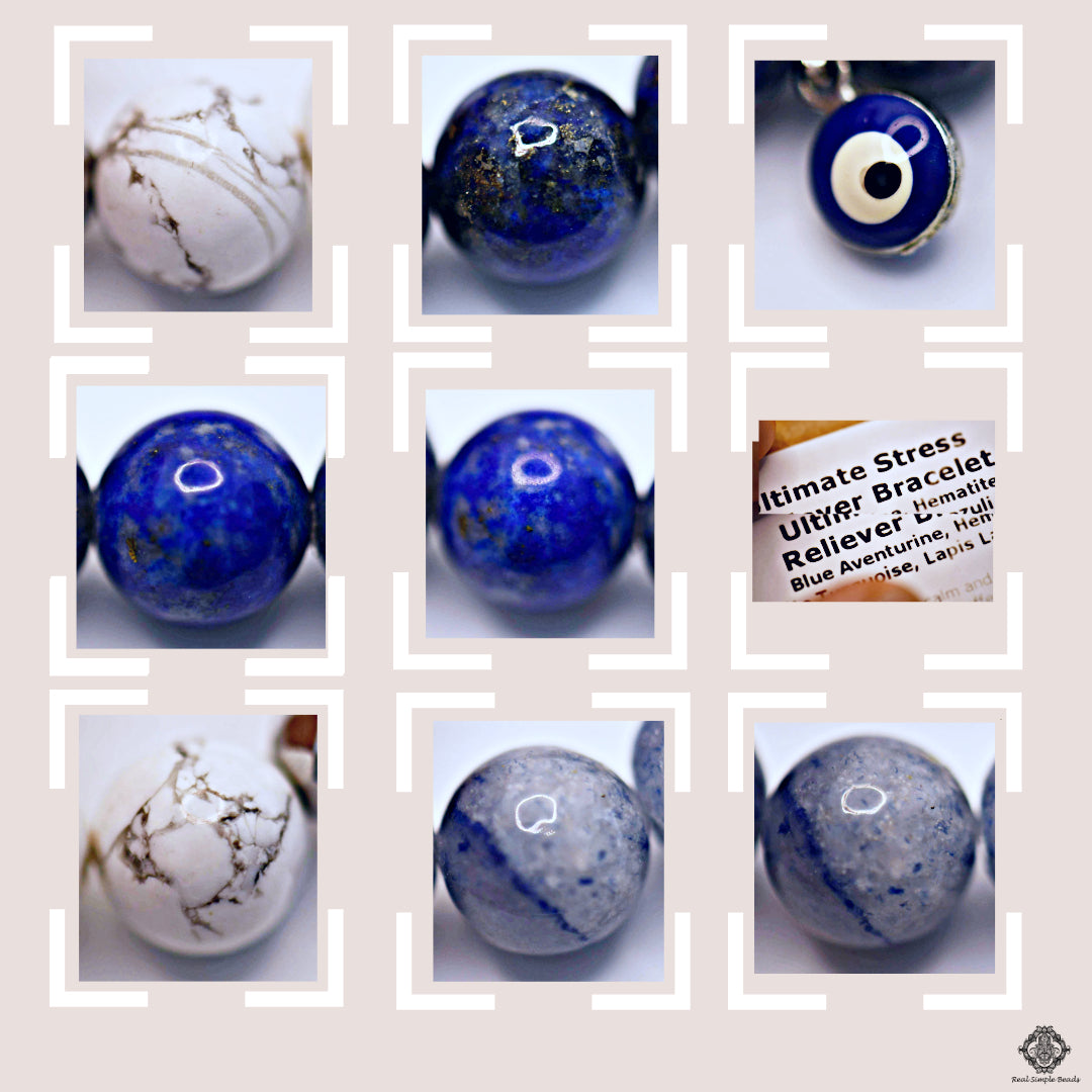 Combining Blue Frosted Fire Agate, Hematite, Howlite Turquoise, Lapis Lazuli, and the Evil Eye symbol in a bracelet creates a powerful fusion of energies, offering protection, emotional healing, and spiritual insight.