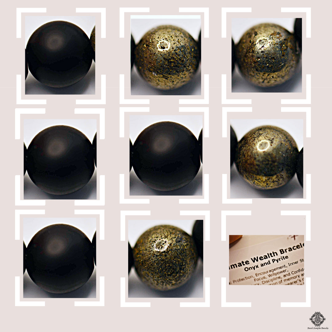 Combining Onyx and Pyrite in a bracelet merges energies associated with strength, protection, and prosperity.